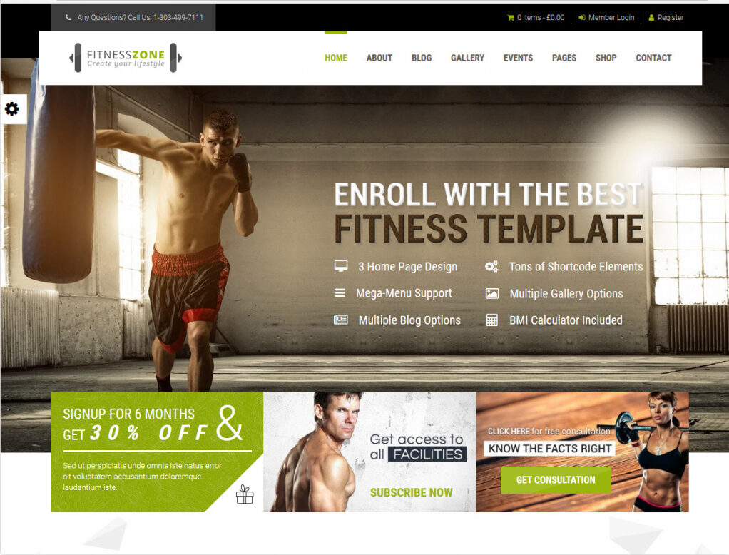 Fitness Zone, Personal Trainer Theme with BMI Calculator Fitness