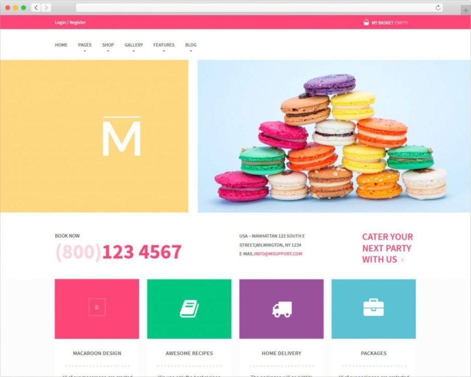 Macaroon is a delicious WordPress theme that’s as colorful as it’s namesake cookies.  Look at that!  It makes me want a cookie and to build an awesome looking online shop. Thanks to all the features Macaroon delivers, and yeah I know it’s not actually named for the macaron, it’s totally possible.  (Macaroons are the coconut based cookie, macarons are the delicious meringue based cookie.  The more you know.) Macaroon is powerful, flexible and it delivers the kind of user experience you’d expect from a premium quality, colorful WordPress theme. Check out the front page. Colorful Macaroon Sweet Shop Colorful…