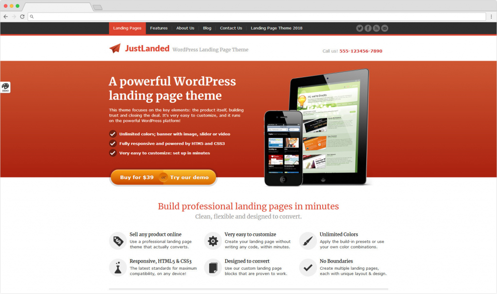 JustLanded WordPress Landing Page Business Themes