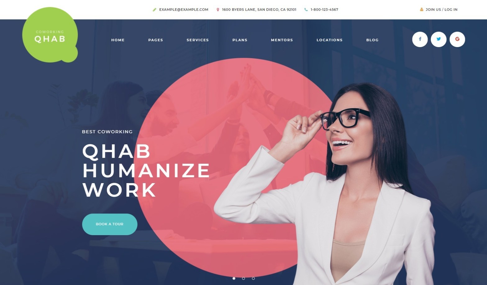 Qhab Coworking Space WordPress Theme Business, Coworking Space, WooCommerce
