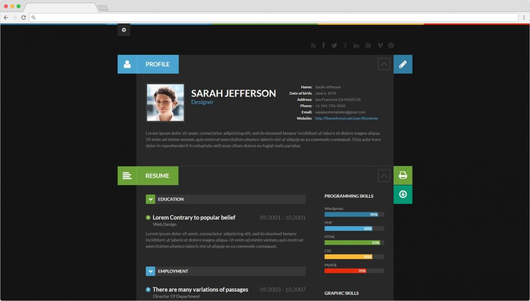 Resume, vCard | WordPress Themes